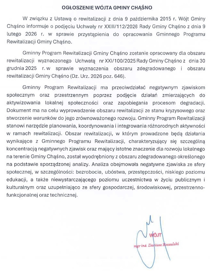 Rozpoczęcie prac nad Gminnym Programem Rewitalizacji Gminy Chąśno